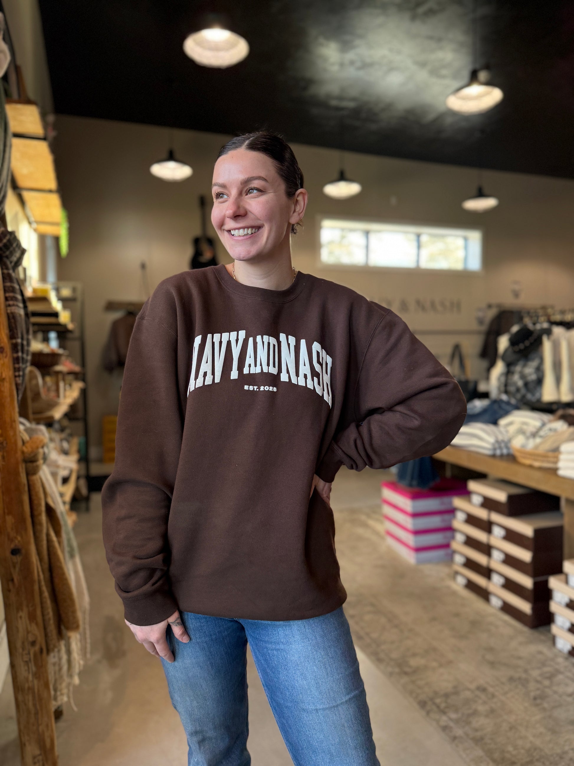 Our custom NAVY & NASH crewnecks are the perfect crewneck you will be able to wear year round! They are a fully lined, a soft lightweight fabric, and feature a puff lettering across the front. Size up for a more oversized, relaxed fit. You'll be pulling this piece to wear out of your closet on a daily basis!